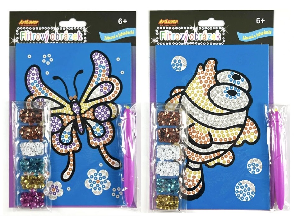Flitrový obrázek A5 - motýl, ryba