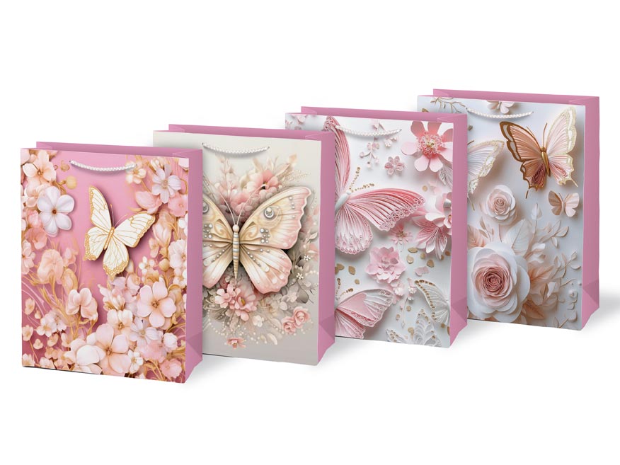 Dárková taška růžová M LUX motýli